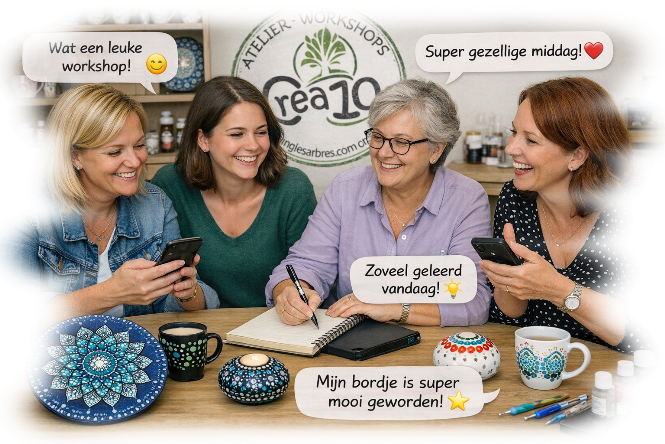 Wat een leuke ervaring was de stipworkshop bij Crea10! Vanaf het begin voelde het welkom met koffie en zelfgebakken lekkernij. Er waren veel voorbeelden om inspiratie op te doen, waardoor kiezen nog lastig werd. De uitleg was helder en stap voor stap, waardoor het stippen verrassend goed lukte. In een gezellige sfeer gingen we allemaal naar huis met een mooi bordje.