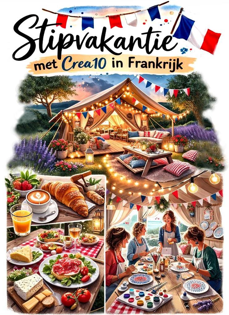 Creatieve ontspanning in de natuur van de MorvanOntwikkel je creatieve kant tijdens een bijzondere stipreis op Glamping Les Arbres, midden in de prachtige natuur van de Morvan in Bourgondië.Samen gezellig stippen op porselein, omringd door rust, ruimte en het Franse buitenleven – dat is waar deze reis om draait.Crea10 heet je van harte welkom op deze unieke locatie. In samenwerking met het team van de glamping verblijf je in een warme, gastvrije sfeer waar creativiteit, ontspanning en verwennerij centraal staan.In 2026 worden er 5 exclusieve stipreizen georganiseerd. Op deze pagina lees je alles over deze bijzondere ervaring.Voor wie is deze stipreis?Deze reis is al mogelijk vanaf 2 personen tot maximaal 4 personen, waardoor er volop ruimte is voor persoonlijke aandacht.Of je nu komt met een familielid, je moeder, zus of vriendin(nen) – ervaren of onervaren – iedereen is welkom. Ik zorg ervoor dat iedereen zich op zijn gemak voelt en persoonlijk begeleid wordt.Het ultieme cadeau voor jezelf (of samen)De Crea10 stipreis is een ultiem cadeau:3 of 7 dagen volledig verzorgd genieten in een ontspannen en inspirerende omgeving.Wat kun je verwachten?